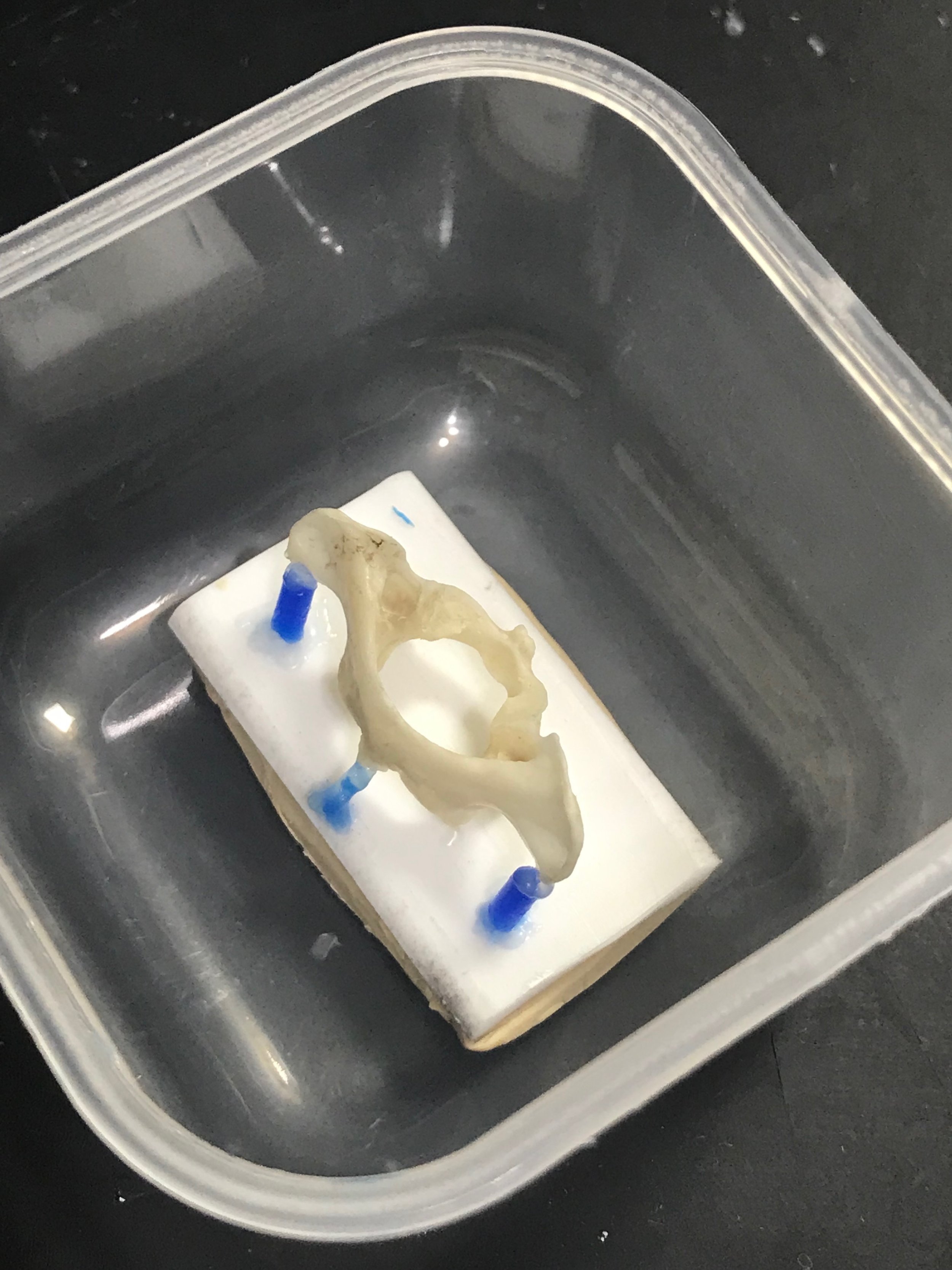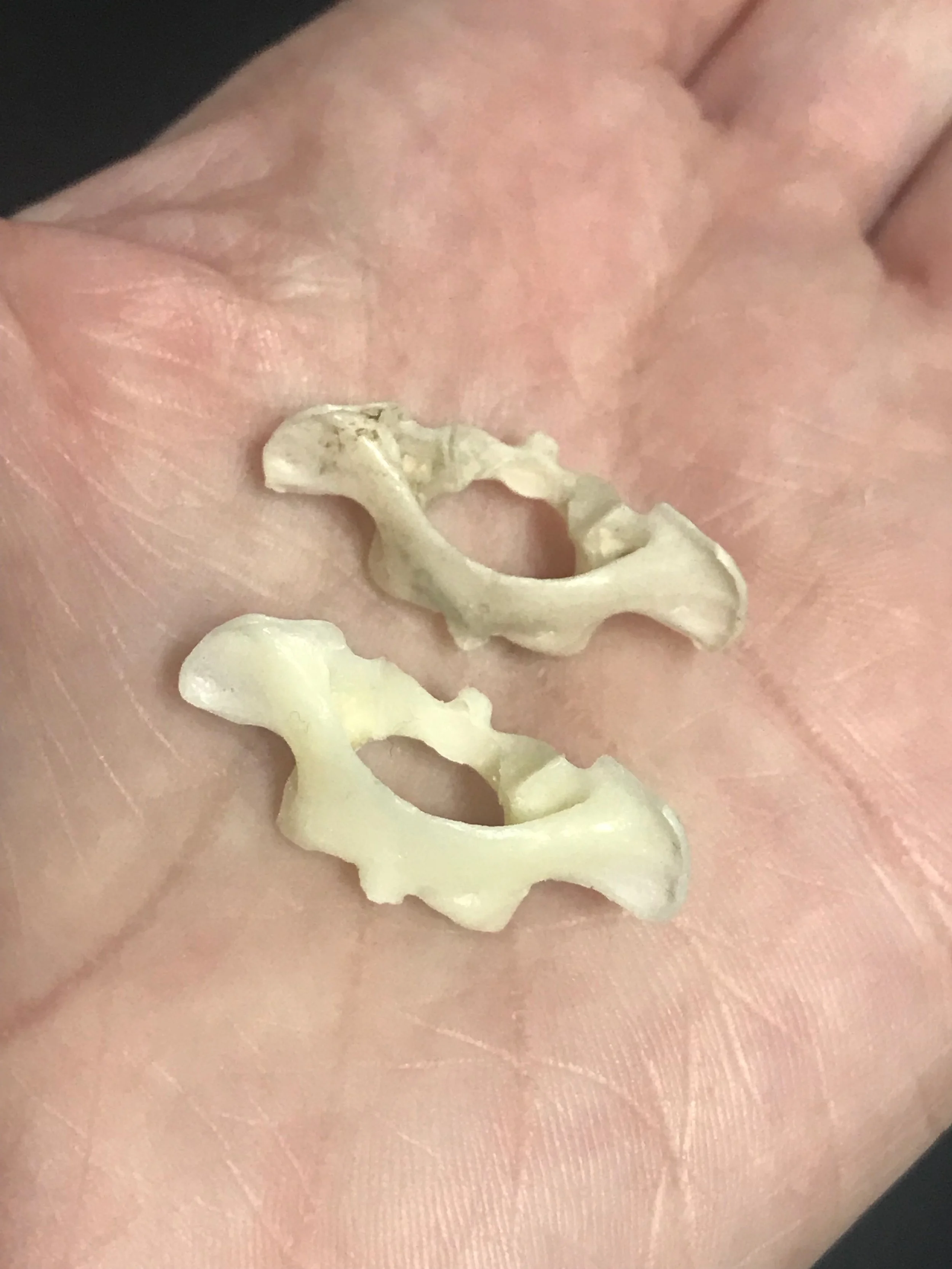 Rabbit atlas bone. Original (top) and my replica cast (below)