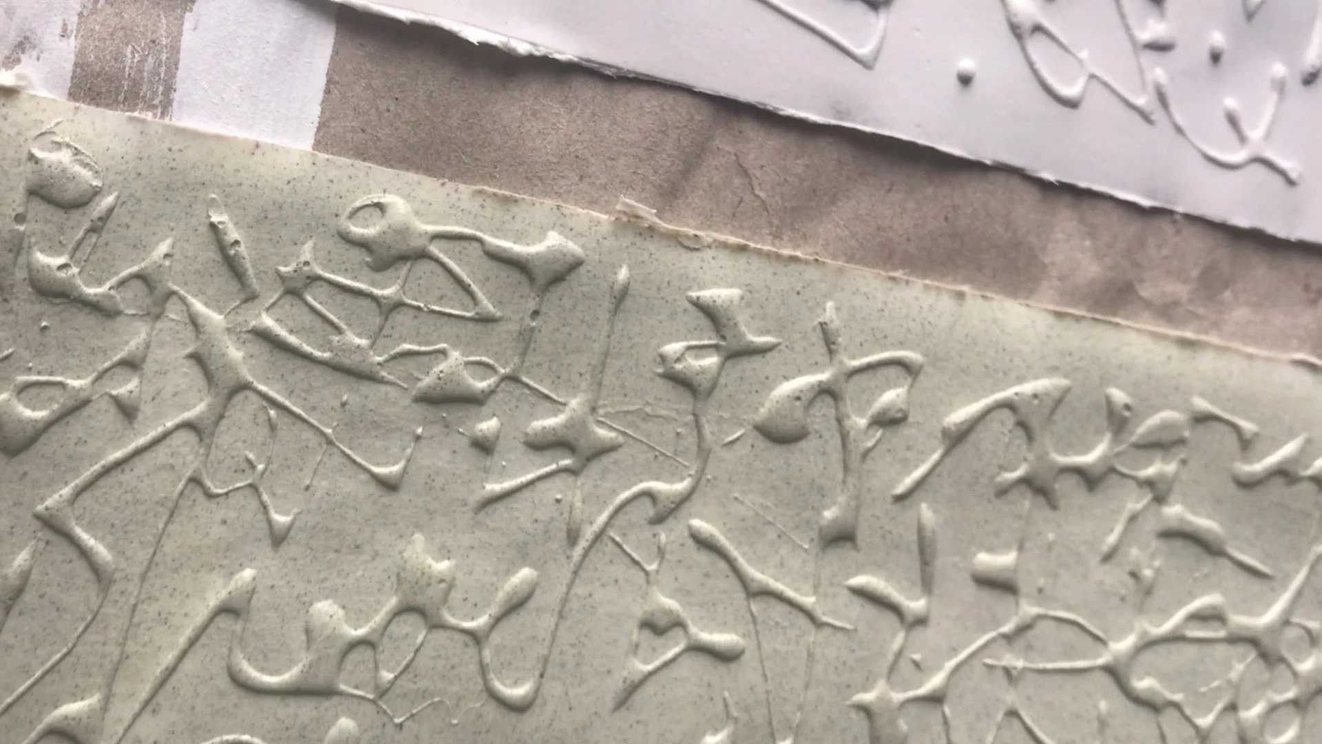 For countless years I’ve been drawn to asemic writing in my work. That gestural, half-readable, tangible energy has always sat comfortably within many of my portraits and still life pieces. At one point I became fascinated with the idea of making that writing more physical, almost raised or textured on the surface of a painting. I tried the most immediate approach of scoring into my paint, and eventually found myself down a rabbit hole of taking negative casts of those marks with silicone moulding materials, then making paint skins from them. From there I travelled into the world of scribing into wax so I could achieve more flow to the writing and broaden the type of moulding materials I could use.